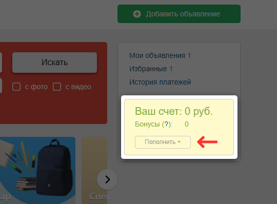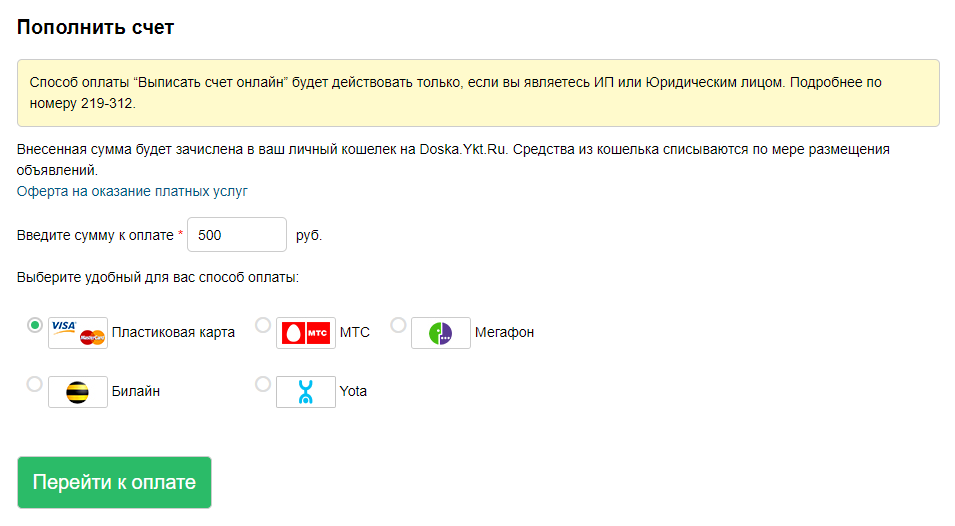 Для пополнения Кошелька на сервисе Doska.Ykt.Ru необходимо выполнить следующие шаги: